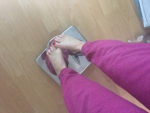 Regardless of how much over your ideal weight it is – it might be 1lb it might be 100lbs – it kicks in when you step on the scales, look down, screw up your nose, adjust the little wheel thing at the top of the scale, realise it was right first time, then mumble OMG.